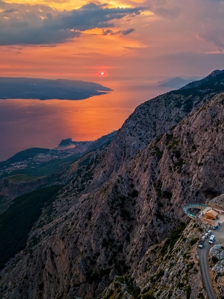 The snow mountain of Biokovo reaches its highest peak at Sveti Jure. It is the end-point of the Biokovo road, and a culmination of beauty awarding those who reach that point, either by a mountain trail or vehicle. The panorama from 1,762 meters above sea level allows one to see the sea, the islands, the Dalmatian Hinterland, mountains of Bosnia and Herzegovina, and even neighboring Italy.