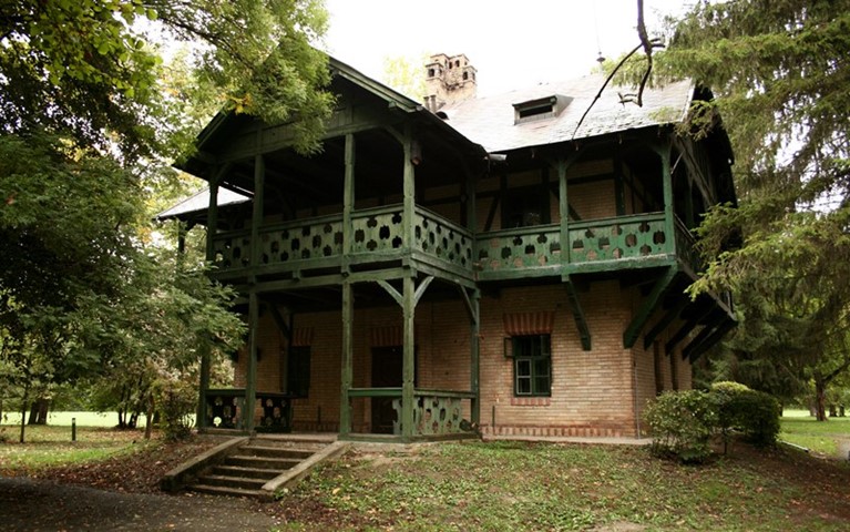 Druga reprezentativna građevina rezidencijalnog kompleksa Tikveš je lovački dvorac. Po svojim stilskim karakteristikama, svrstava se u kurije, vile ili lovačke kuće ladanjske arhitekture, koje su se gradile krajem 19. i početkom 20. stoljeća. Nekoliko varijantnih rješenja ponuđeno je za izgradnju ovog objekta, te je usvojeno rješenje iz 1903. godine, stoga u to vrijeme ili nešto kasnije, datira i izgradnja same građevine. Ladanjska vila nalazi se na blago povišenom terenu, ima drvene rezbarene konstrukcije trijema na katu, drvene rezbarene konzole i stiliziranu drvenu ogradu. Poseban detalj nalazi se na pročelju iznad glavnog ulaza gdje je ucrtana 1926. godina s vodoravnom linijom, koja se prema navodima, odnosi na veliku poplavu i razinu vode koja je te godine poplavila kompleks Tikveš i okolni kraj.