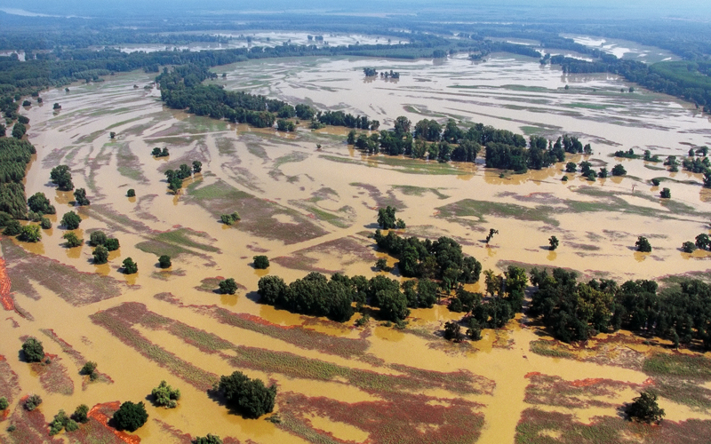 U zimu 1838. godine velika je ledena poplava nanijela mnogo štete, ali Kopačani među najvećim poplavama najviše spominju onu iz 1876. godine kada je puknuo nasip u blizini. Nova i duboka udubina nastala je od vode na mjestu gdje se to dogodilo, gdje je dubina 20-30 metara. I danas se to mjesto zove Sakadaš. Često se spominju i poplave iz 1926., 1965. i 1972. kada su se vode Dunava i Drave razlile po Kopačevu. Izgradnjom obrambenih nasipa 60-ih godina, najbolje mrijestilište uz Dunav smanjuje se na 1800 hektara. Presušili su fokovi, vode i udubine Kopačeva. Selo se potpuno presušuje te ostaje sa vanjske strane nasipa, a voda je ovdje predstavljala život, sve.